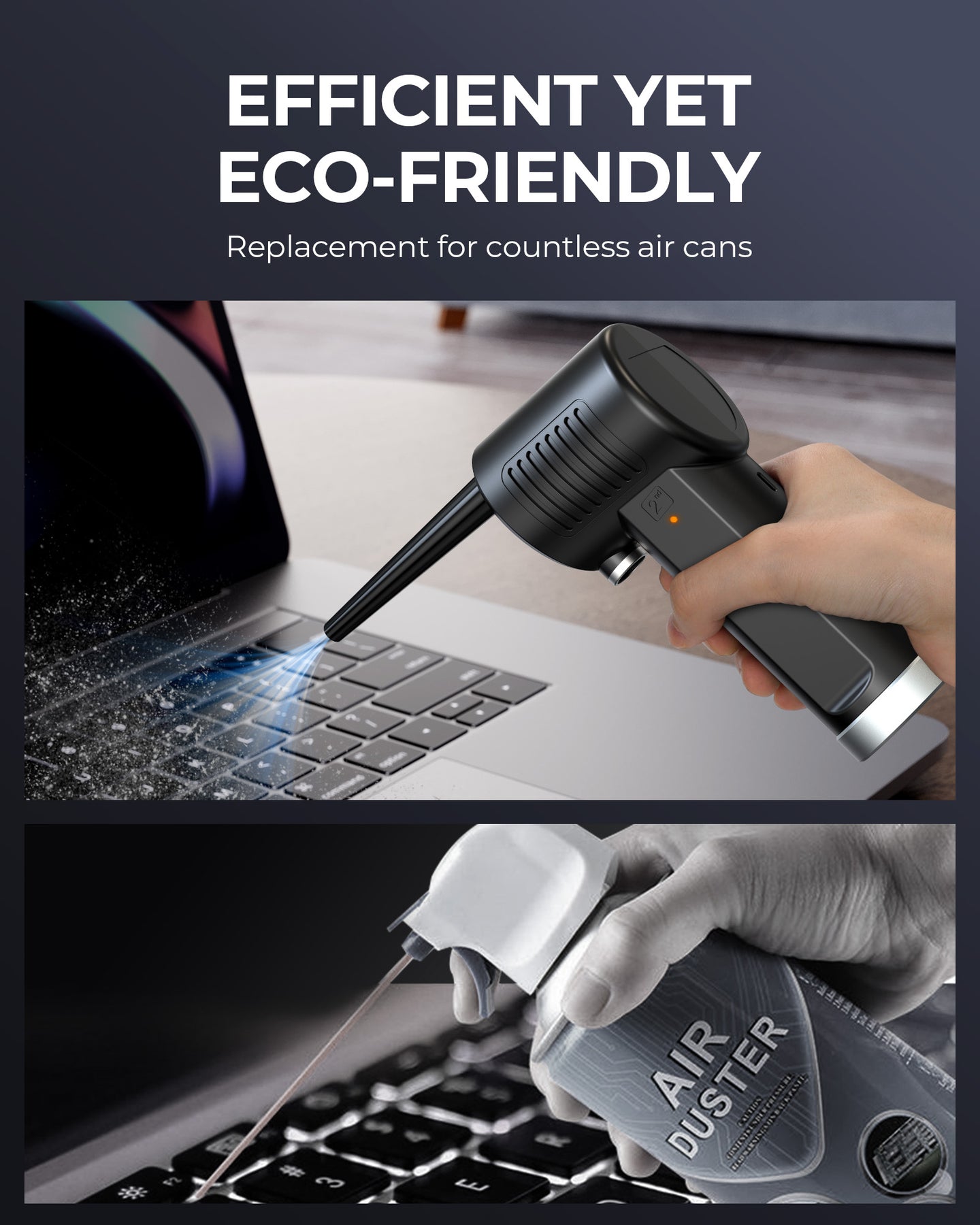 Scientific ergonomic design make it super easy to use and you will no longer holding a cold can when blowing things away. More comfortable/cost-effective than constantly purchasing canned air