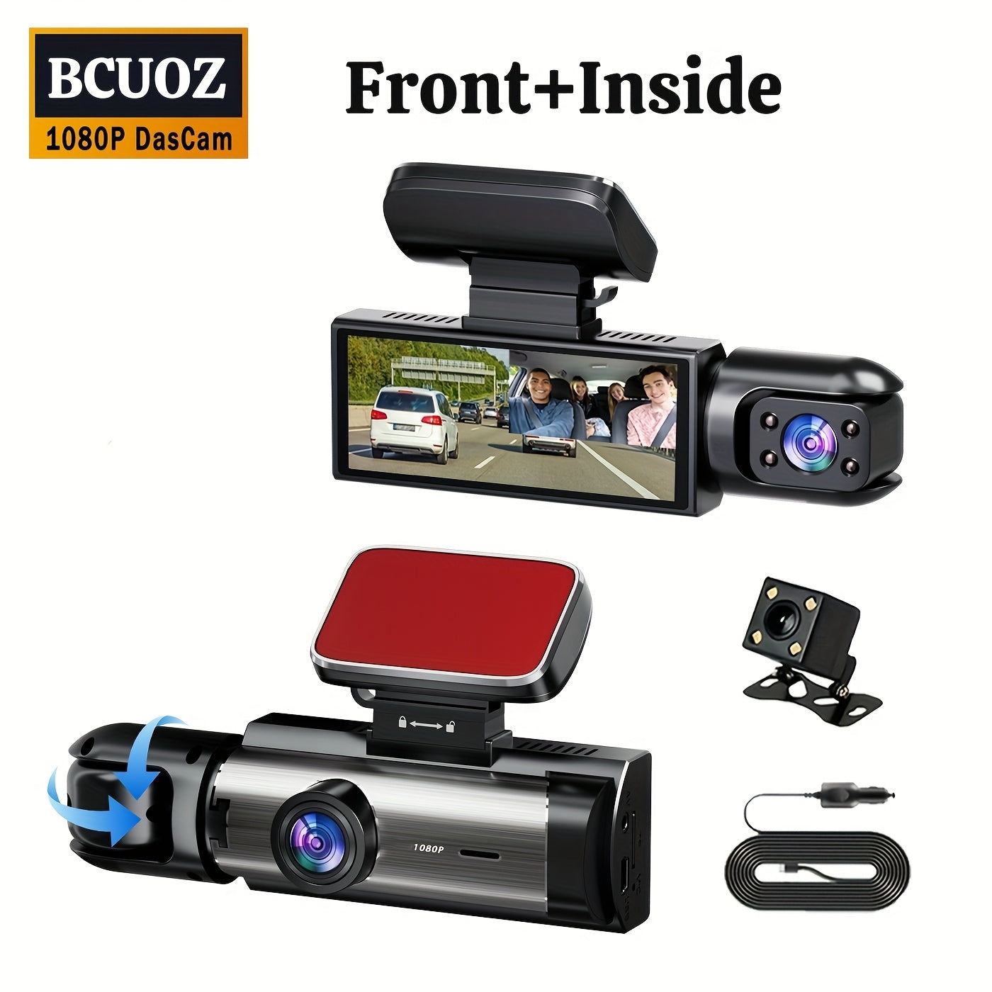 BCUOZ 1080P Car Accessories Dual Cameras Dashcam, Front 1080P And Inside 480P, Car Camera with IR Night Vision, Loop Recording, Wide Angle Car DVR Camera with 3.16 Inch IPS Screen, Dual Lens Car Dashboard Video Cam, 32GB SD C