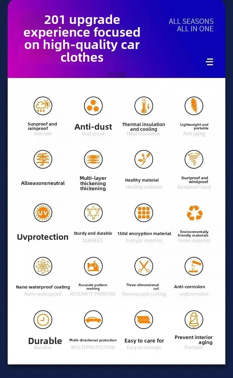 • Universal Fit : This car clothing cover is designed for universal fit, making it suitable for various car models and sizes.