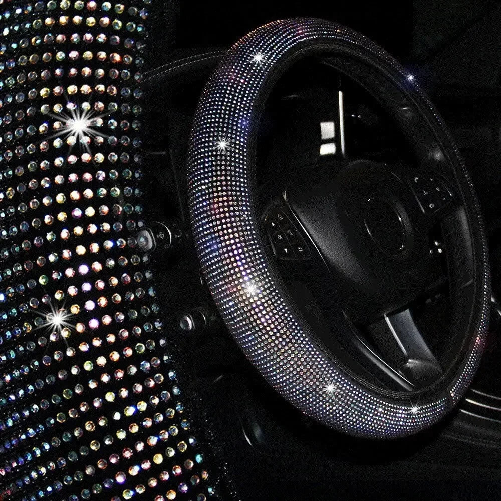 Bling Decoration: Fashion colorful design of the bling rhinestones steering wheel cover, adds luxury into your car interior, especially bling under the light, perfect Gift for Women and girls.